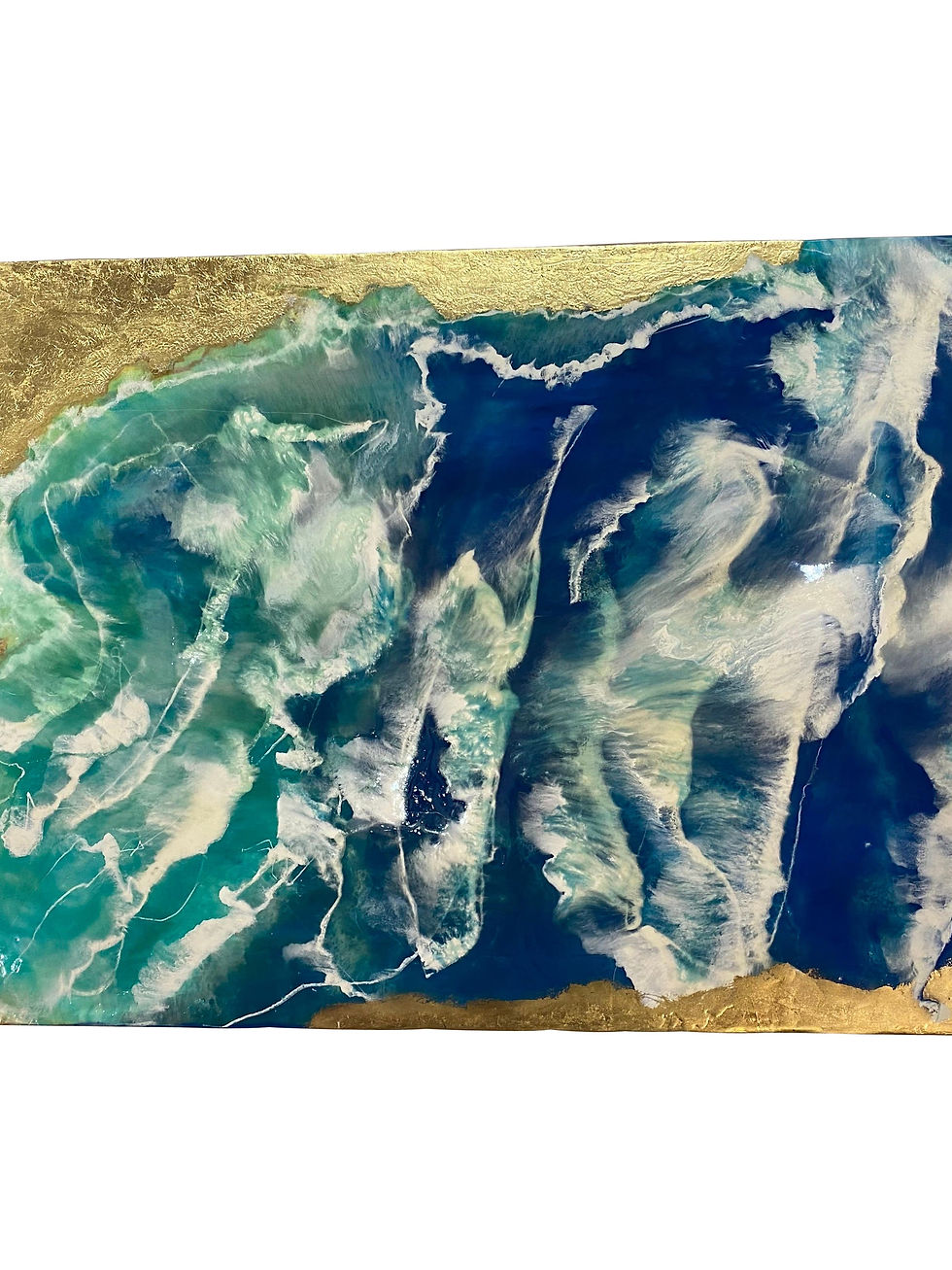 Modern Abstract Painting of Acrylic and Gold Leaf Signed Frenchy